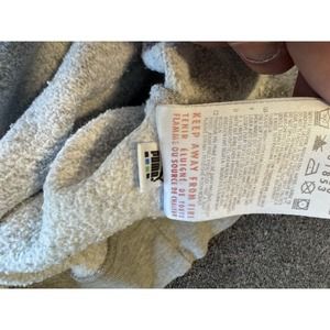 This vintage PUMA men's pullover sweatshirt in size M features the brand's athletic department logo spell out on a solid gray color. The sweatshirt is made of cotton and cotton blend fleece fabric, making it comfortable for all seasons. The long-sleeved sweatshirt has a crew neck and a regular fit, perfect for gym & training, cross training, basketball, and bodybuilding activities.