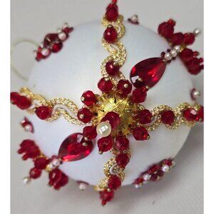 Vintage PUSHPIN ORNAMENT Sequin Bead Ornate Christmas Tree Handmade Bling