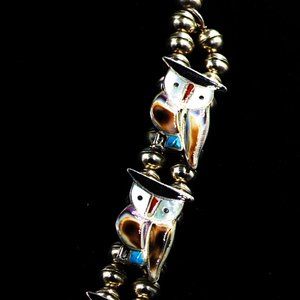 Vintage PW Natewa Signed Zuni Owl Inlay Squash Blossom