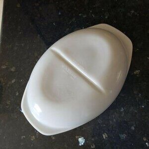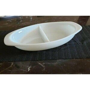 Vintage PYREX 13" Oval Divided Casserole Dish handles White #10633