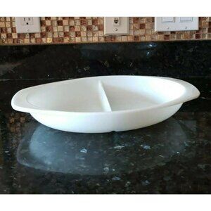 Vintage PYREX 13" Oval Divided Vegetable Bowl White #10633. Condition is "Used" chips, scratches, or stains.