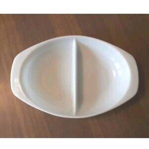 Vintage PYREX 13" Oval Divided Vegetable Bowl White #1063 No chips, cracks, crazing or repairs.