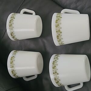 Vintage PYREX Crazy Daisy White Mugs Set Of 4