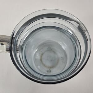 The Vintage PYREX Flameware BLUE GLASS Double Boiler Pots 6763-U 6763-L are a set of two round, clear glass pots with a mid-century modern style. These double boiler pots are made in America using a fused glassmaking technique, with a pressed glass production style. The pots are dishwasher safe and feature a vintage PYREX design, perfect for all occasions. The set includes 1.5 Qt. Double Boiler pots without lids, ideal for cooking and serving on a vintage-inspired table setting.