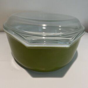Vintage PYREX Green Oval Casserole Dish 043 2.5 QT with Clear Glass Lid 945C