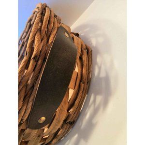 Vintage PYREX Round Wicker Basket Holder with Leather Handles 024.624.684