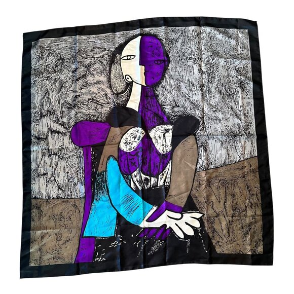 Vintage Pablo Picasso Art To Wear Cubism Portrait Square Scarf