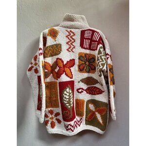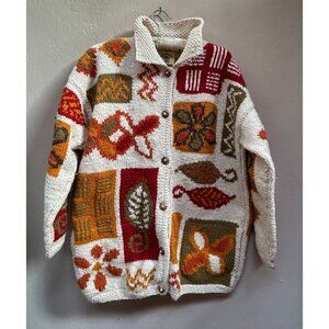 Vintage Pachamama Autumn Leaves Wool Handknit Handmade Cardigan Sweater Multi