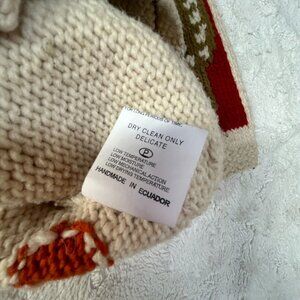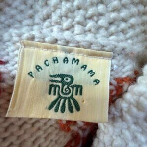 This vintage Pachamama cardigan sweater is a unique piece that will add a touch of art deco to your casual outfit. Made of 100% wool, it features a beautiful multi-color design with autumn leaves. The chest size is 48 inches and the shoulder to shoulder measurement is 22 inches, with a shoulder to hem length of 30 inches. This handmade sweater is an original piece from Ecuador, perfect for any occasion.