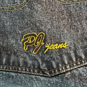 The Pachinno Jeans JNCO style in size 34x27 are a vintage piece from the 90s. These baggy skater jeans feature a relaxed fit and wide-leg style, perfect for hip hop enthusiasts. Made from cotton denim with a dark wash, these jeans have a zip and button closure, along with embroidered accents and logo details. With a waist size of 34 inches and inseam of 27 inches, these jeans offer comfort and easy care, making them a stylish and practical addition to any wardrobe.