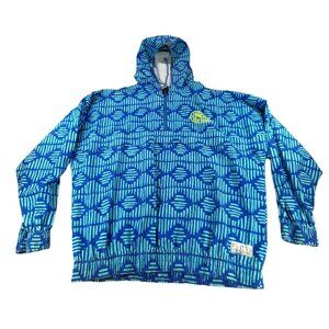 Vintage Pacific Coast Highway Blue & Teal Geometric Hoodie Jacket XL 100% Cotton