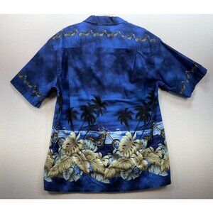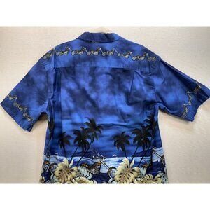 Vintage Pacific Legend Mens Hawaiian Shirt Size XL Blue Palm Trees Short Sleeve