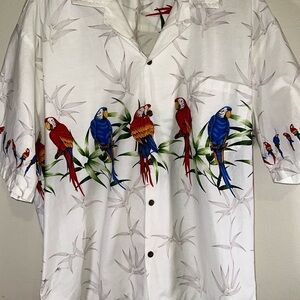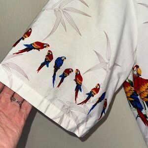 Very good preowned condition men’s vintage Pacific Legend parrot print short sleeve shirt