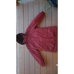 The Vintage Pacific Trail Women Size Small Jacket is a stylish mid-length parka coat in a bold red color, perfect for outdoor enthusiasts or those with a retro 80s or 90s vibe. Made from polyester with a polyester lining, this jacket offers both comfort and durability. Featuring a hood, full zipper closure, and various accents like buttons and the Pacific Trail logo, this jacket combines functionality with a touch of nostalgia for a unique and fashionable look.