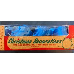 Listed here is a Vintage Package Holiday House Christmas Balls Decorations Star Band in blue satin. Estimated 1950s. There are 12 balls in the box. They are manufactured by Star Band Company, Inc., Portsmouth, Virginia. Apparently this pre-dates zip codes.