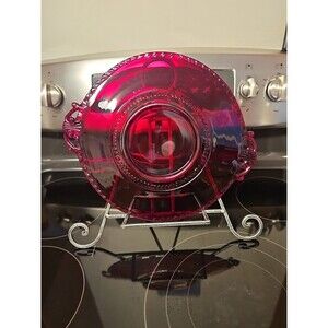 Vintage Paden City Red Depression Glass Filigree Gadroon Pattern Cheese Plate
