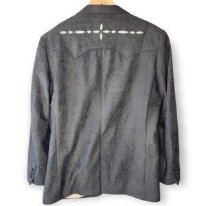 Gorgeous Pagano West brand western sportcoat. The material is a super soft felt-like material. Western front and rear yoke with a very unique western accents. Padded shoulders.
