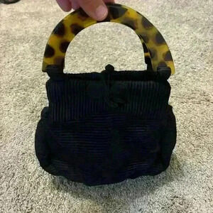 Vintage Paint the Lily Small Clutch Handbag Black quilted with tortoise handle