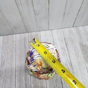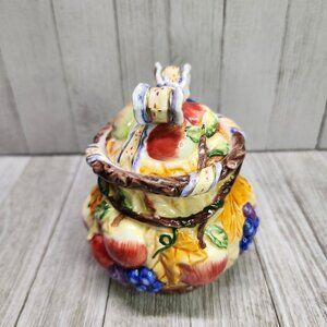 Vintage Painted Jam Jar Fruits and Fall Leaves Design Ceramic with Lid 5.5" Tall