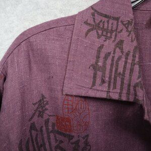 Add a touch of vintage charm to your wardrobe with this stunning button-up shirt by Painted Pony. Made from 100% linen, it features a deep burgundy hue with an elegant "Good Luck/Life" theme that’s both unique and stylish.