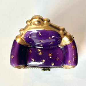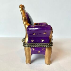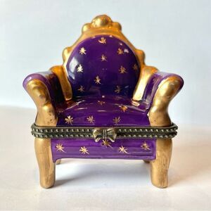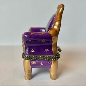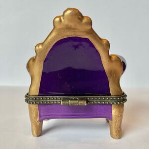 Vintage Painted Purple Gold Ceramic Royal Chair Throne Trinket Box