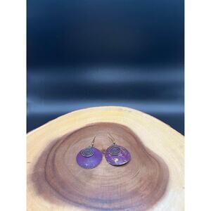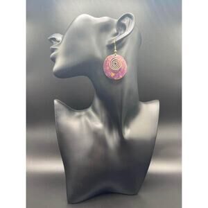 Hand painted vintage earrings with a spiral charm. Each earring is unique as they were done by hand. 3” in length.