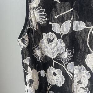 Vintage Painted Threads Tank Top Lace Boho Floral Lace Black/ White Womens S Y2K