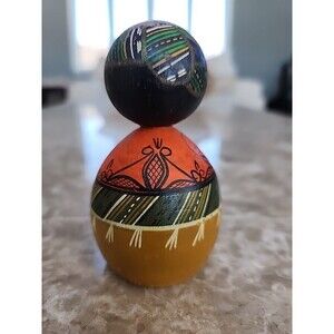 2 wooden dolls, Hand Painted. Not sure of age or origin. Little over 3" Tall, 2" round.