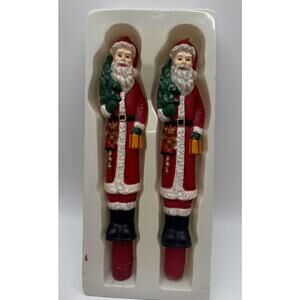 Vintage Pair 10” Sculptured Santa Claus Taper Candles Hand Painted Unburned