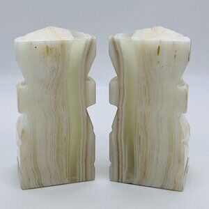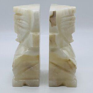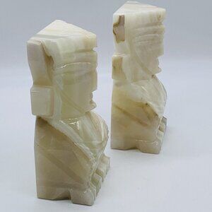 Vintage Pair Carved Heavy Marble Aztec Mayan Tiki Stone Bookends 5.5”