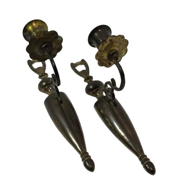 Vintage Pair Castilian Imports Brass Copper Wall Sconces Candle Holders Reverse