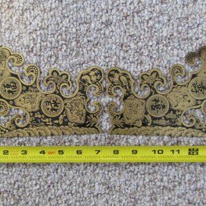 VINTAGE Pair Chinese Fú Lù Shòu Gilded Metal Cabinet Hardware Plaques - 13.5" Wide