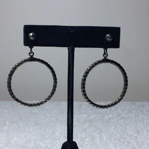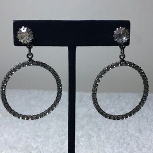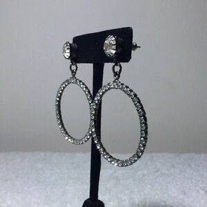 Vintage Pair Drop Round Rhinestone Earrings in Silvertone (2in)