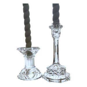 Vintage Pair of 2 Etched Crystal Taper Candle Holders Beautiful Classic Decor