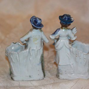 Vintage Pair German? Toothpick holders Small Vases Man & Woman Ceramic Porcelain