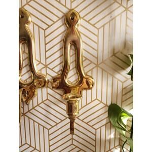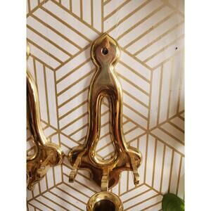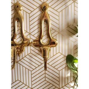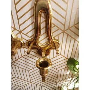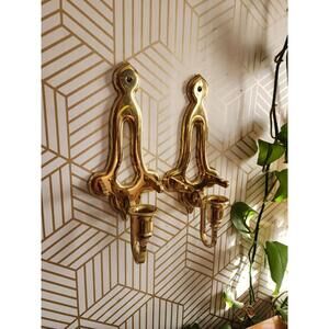 Vintage Pair Gold Brass Sconces Wall Hanging Candle Holder 11” With Plate Holder. Good condition.