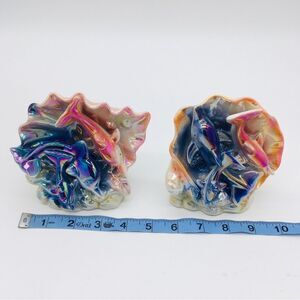 Vintage Pair Luster Dolphins Ceramic Iridescent Pearl Seashell Figurines
