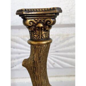 Vintage Pair MCM Bronze Candlestick Holders Cut Tree Branches