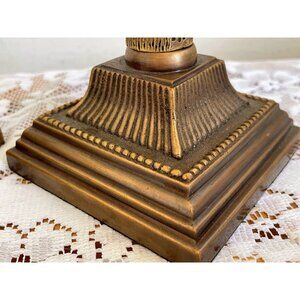 Here for your consideration is an unusual pair of vintage bronze finished candlestick holders in the shape of cut off tree branches. I am not sure if these are actual bronze but they are a bronze color. They measure 11" tall. They have a felted bottom. They are in very good condition with no issues. Free shipping to the lower 48 USA only