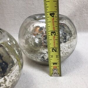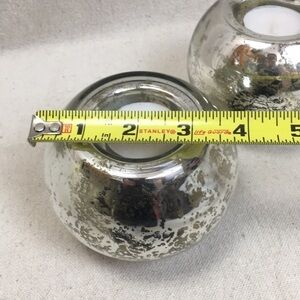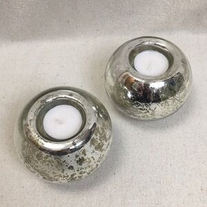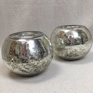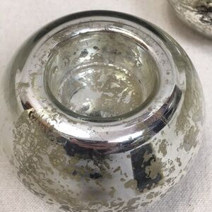 Rounded Silver mercury Glass Tealight holders- gently used, no chips or cracks, one small area has slight scratches( very difficult to photograph and not noticeable)