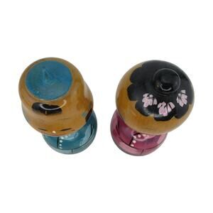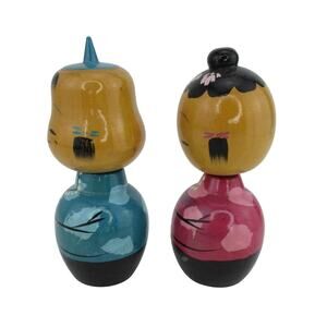 Vintage Pair Nodder Doll Wood Hand Painted Bobbleheads 5" Tall