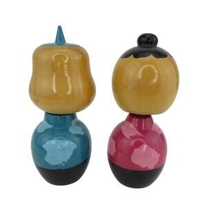 Vintage Pair Nodder Doll Wood Hand Painted Bobbleheads