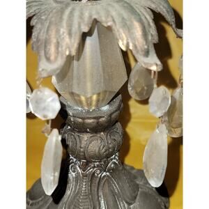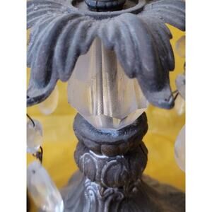 Vintage Pair Of Cast Metal Teardrop Crystals And Prizm Candle Stick Holders