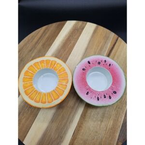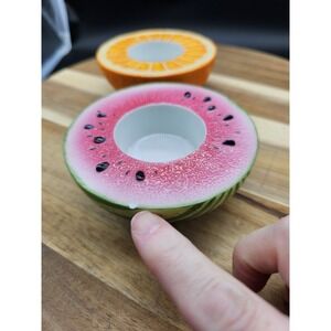 Vintage Pair Of Ceramic Partylite Fruit Votive Candle Holder Orange & Watermelon