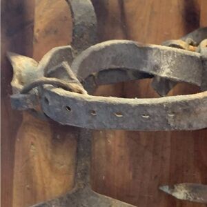 Vintage Pair Of Crampons Military Ice Cleats With Leather Strapping- Militaria