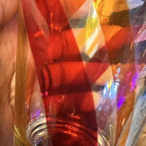 Vintage Pair Of Italian Cerve Clear Yellow Red Tumbler Juice Glasses Barware