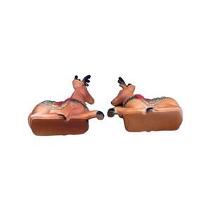 Vintage Pair Pacific Rim Christmas Reindeer Candle Holders ~ Hong Kong ~ 3” Tall