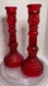 Vintage Pair Ruby Red Hobnail Glass Candlesticks with Cat/Duck L.E. Smith