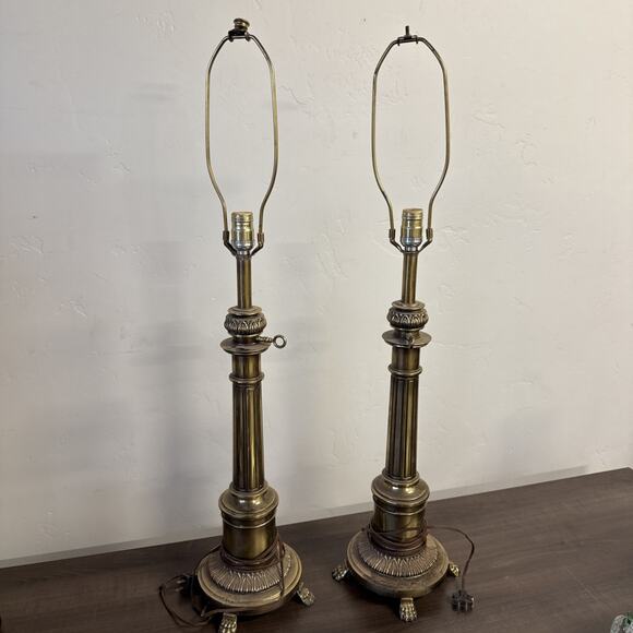 Vintage Pair Set STIFFEL Brass Table Lamps 36” tall Pillar Clawfoot Ornate MCM