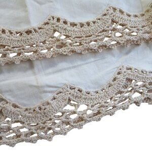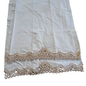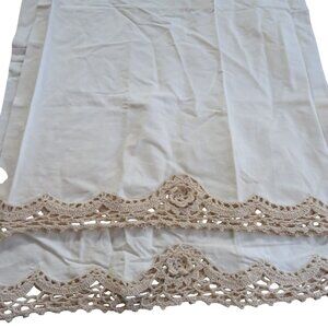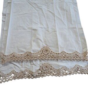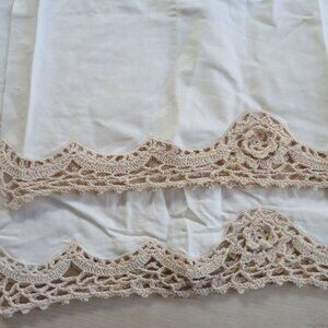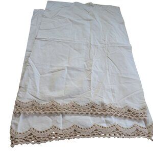 Vintage Pair of 2 Beige Cotton Pillowcases Crochet Lace Trim Standard 20x31 NEW